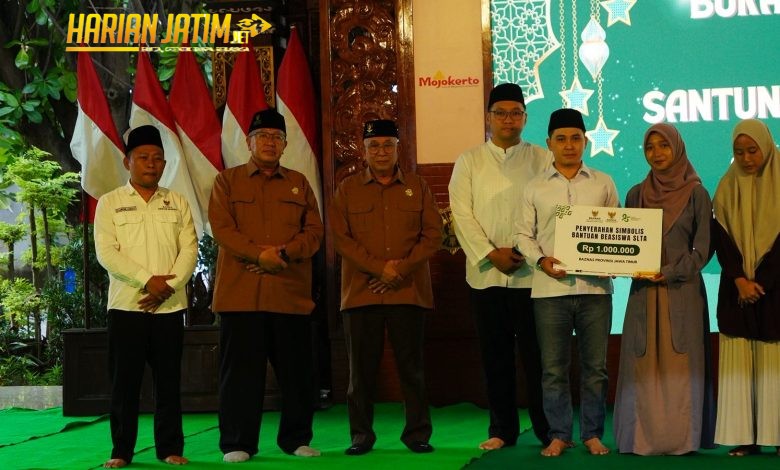 Mojokerto, harianjatim.net – Pemerintah Kabupaten Mojokerto bersama Baznas Provinsi Jawa Timur dan Baznas Kabupaten Mojokerto menggelar kegiatan buka bersama serta santunan bagi 1.000 anak yatim dari 18 kecamatan se-Kabupaten Mojokerto. Kegiatan yang berlangsung dalam suasana Ramadan tersebut menjadi momentum untuk memperkuat kepedulian sosial sekaligus berbagi kebahagiaan dengan anak-anak yatim.
