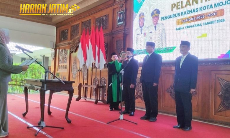 Mojokerto, harianjatim.net – Dwi Hariadi, Muhtadi dan Akhnan akhirnya dikukuhkan sebagai pengurus Badan Amil Zakat Nasional (BAZNAS) Kota Mojokerto periode 2026–2031. Pelantikan ketua dan dua wakil ketua pengelolaan ZIS (Zakat, Infak, Sedekah) itu dilakukan Wali Kota Mojokerto Ika Puspitasari di Pendopo Sabha Kridha Tama Rumah Rakyat, Selasa (3/3/2026).