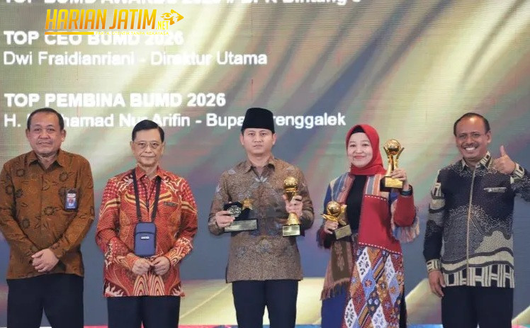 TRENGGALEK, harianjatim.net – Badan Usaha Milik Daerah (BUMD) Kabupaten Trenggalek, Jawa Timur, PT BPR Jwalita (Perseroda), meraih Golden Trophy dalam ajang TOP BUMD Awards 2026 yang digelar di Jakarta pada hari Senin tanggal 13 April 2026 setelah tiga tahun berturut-turut menyandang predikat BUMD Bintang 5.